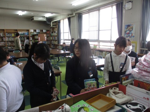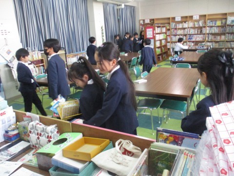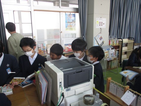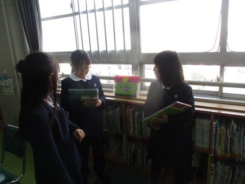 図書の時間の様子です。図書室で好きな本を選んで借りました。