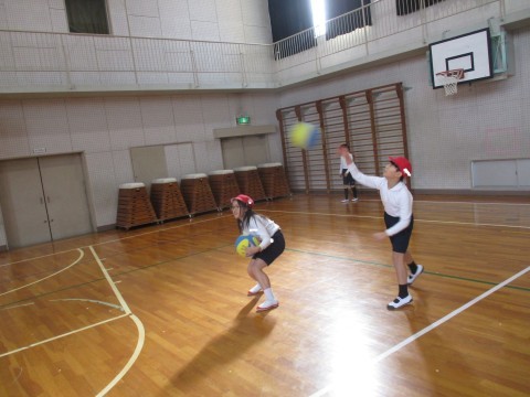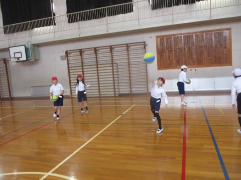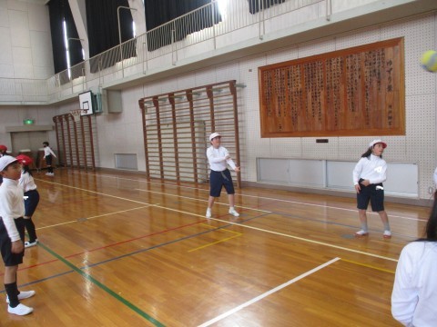 体育の授業の様子です。ソフトバレーボールの練習をしました。パス回しやアタックの練習をしました。声も良く出ていましたね!