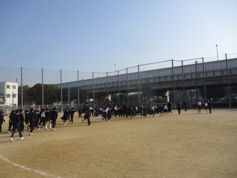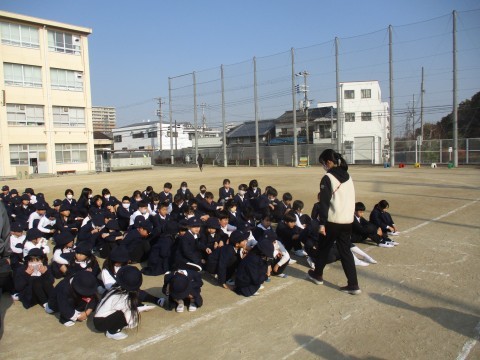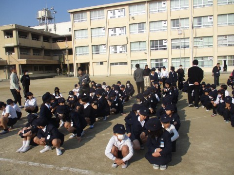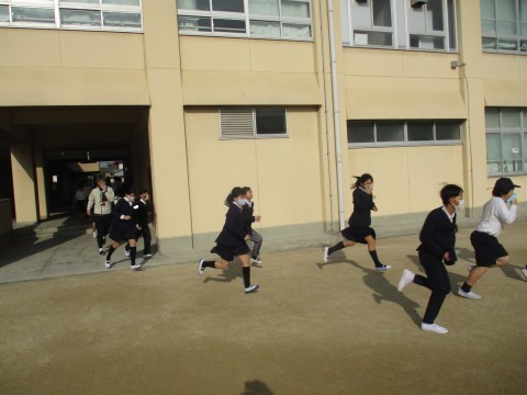 今日は予告なしで地震から火災を想定した避難訓練をおこないました。校庭に全員が集まるまでに2分53秒でした。急なことにしっかり対応できていました。