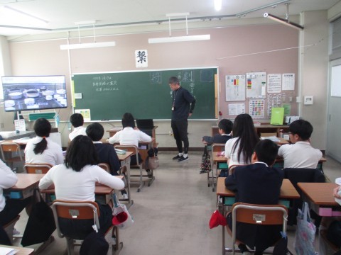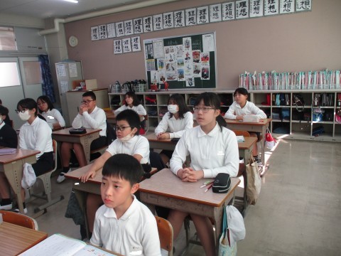 避難訓練を踏まえ、先生から日本で起きた災害や気を付ける行動などお話がありました。