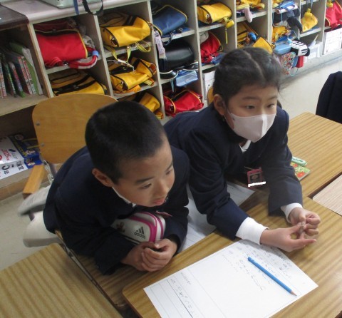 国語の授業の様子です。ともだちに詩をおくろうの単元でみんなで交換しました。