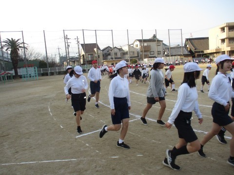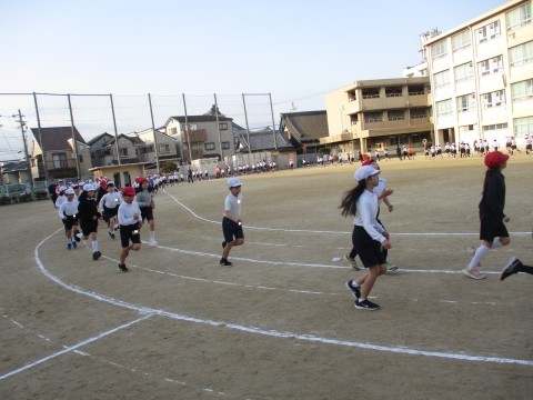 3回目のかけ足朝礼です。こどもたちもすっかり慣れて、ペースが上がってきています。