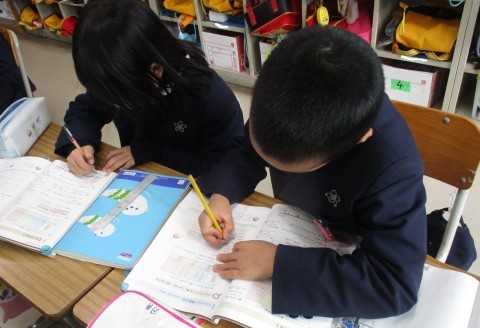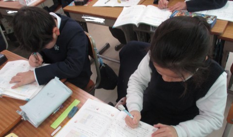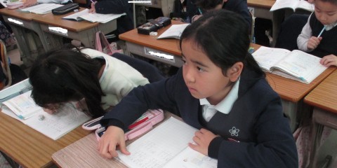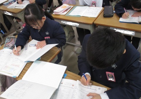 算数の授業の様子です。4ケタの数の仕組みを4学び、計算問題を解きました。