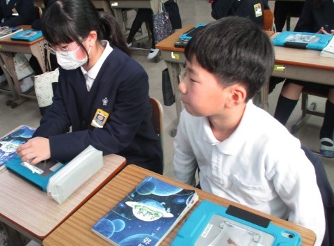 国語の授業の様子です。「想像力のスイッチを入れよう」を読み合わせ、各時間のめあてをみんなで考えました。