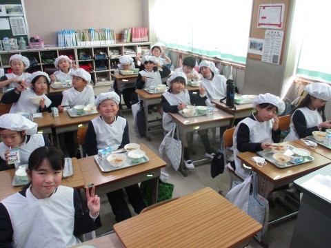 給食の時間の様子です。今日もおいしくいただいました。ありがとうございます!今日はのりの佃煮が人気でした。
