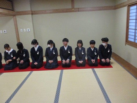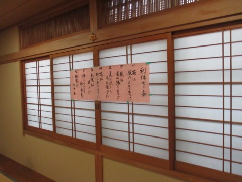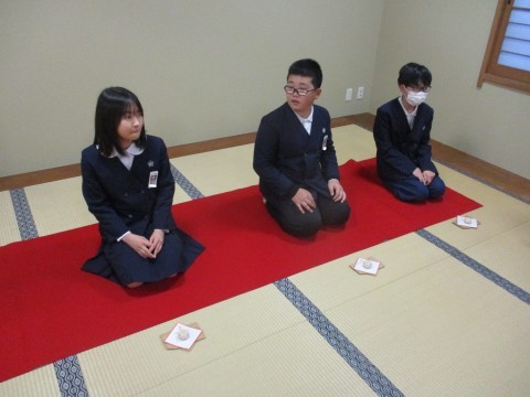 茶の湯体験の様子です。校区の真宗寺さんにご協力いただきました。大変ありがとうございました。子どもたちは作法や千利休の七か条など、多くのことを学びました。