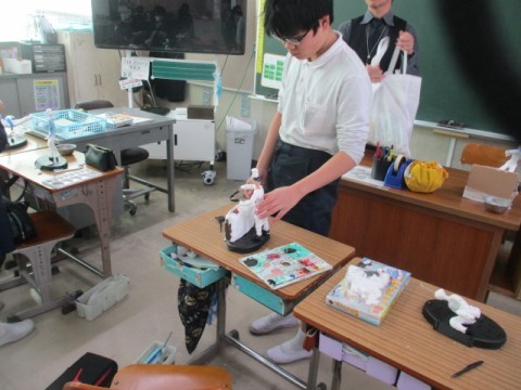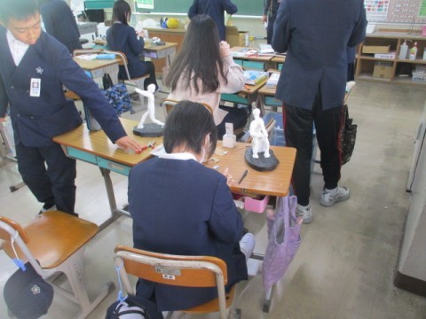 6年生は1組も2組も図工で将来の自分を作成していました。