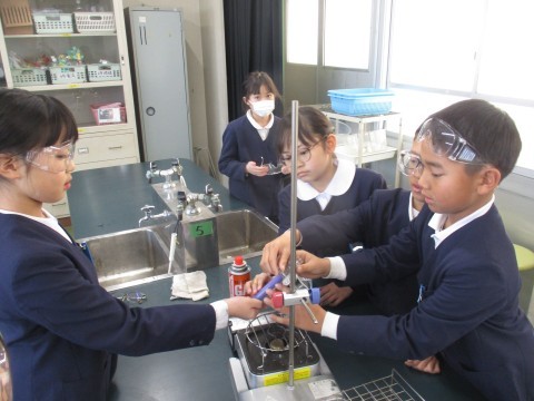 理科の授業の様子です。水のあたたまり方について実験をしました。