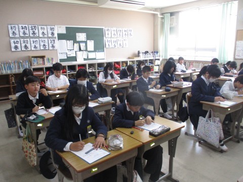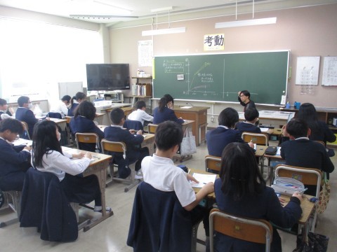理科の授業の様子です。ものの溶ける限界値を突破するにはどうしたら良いか考え発表しました。