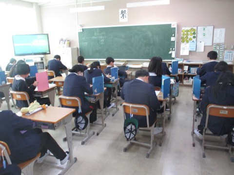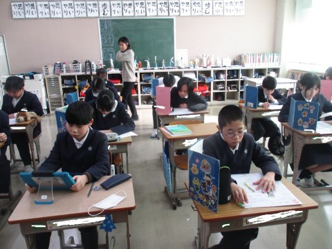算数の授業の様子です。今日はまとめのテストでした。粘り強く取り組んでいます。
