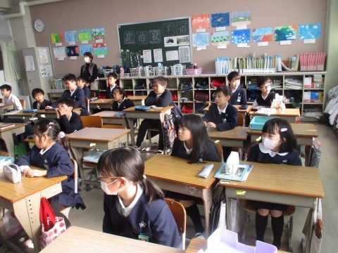 朝の時間の様子です。今日のお昼休みに行う、みんな遊びの説明をしてくれています。今日は「バナナおに」です。