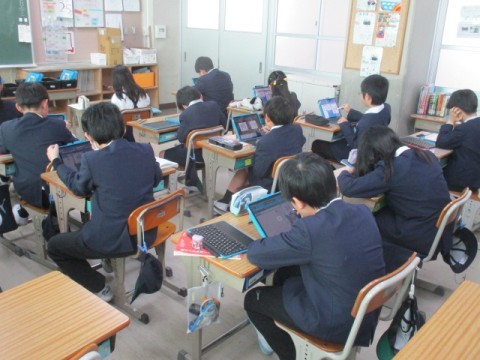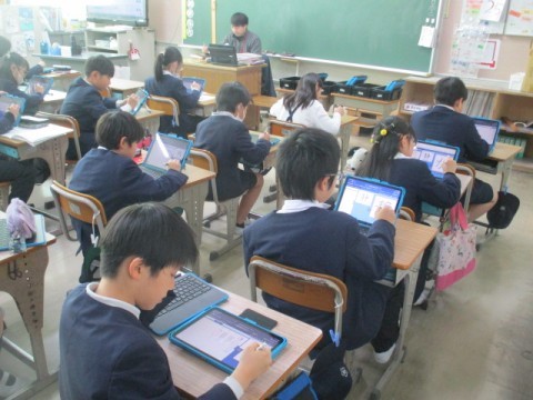 4年生はタブレットで漢字の学習をしていました。字が汚いと間違いにされるので何度もやり直しをしている子もいました。