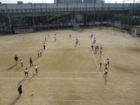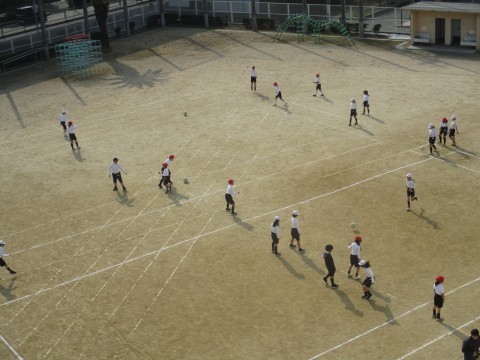 体育の授業の様子です。ラインサッカーの試合をしました。連係プレーもできましたね!