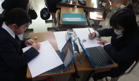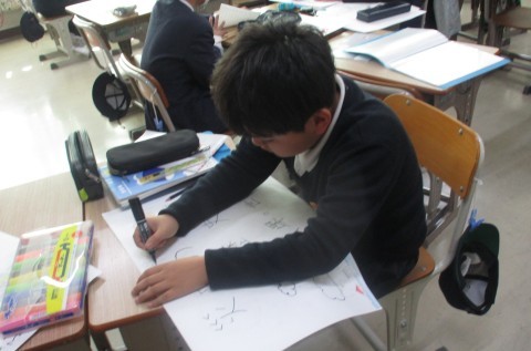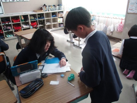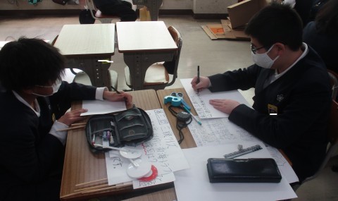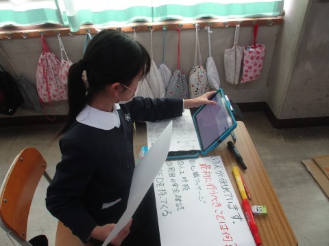 総合の授業の様子です。発表に向けて仕上げをしています。