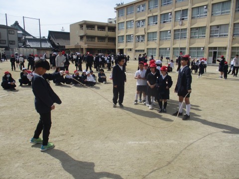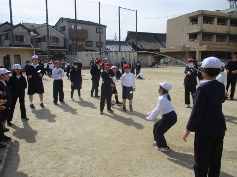 今日は全校児童で「おおなわ大会」を行いました。この間、1年生から6年生がチームを作り練習を重ねてきました。本番は練習の成果を発揮できましたね。