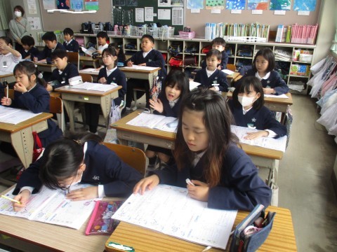 国語の授業の様子です。「受・島」の漢字を覚えました。