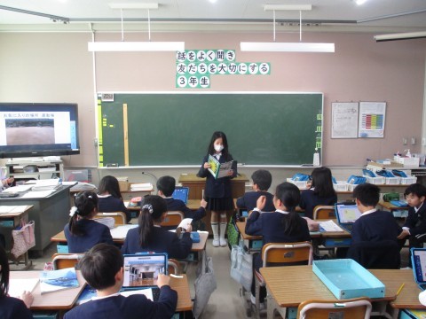 今日は、学校の中で一番のお気に入りの場所をみんなの前でスピーチしました。