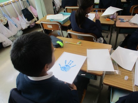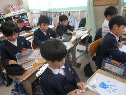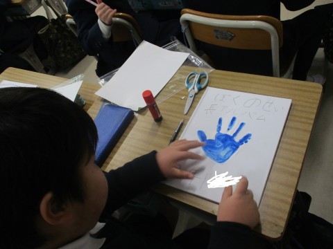 生活の授業の様子です。わたしの成長アルバムの表紙を作成しました。