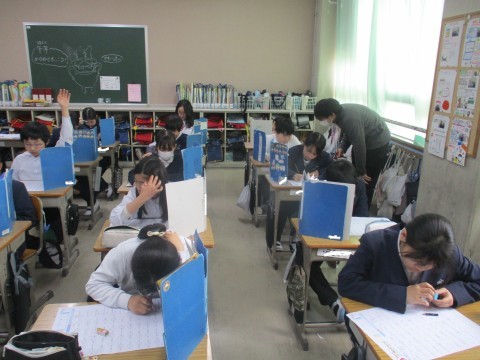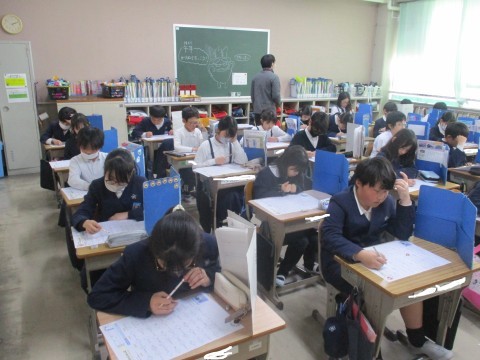 国語の授業の様子です。今日は漢字の大テストでした。最後まで頑張って取り組んでいました。
