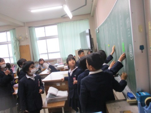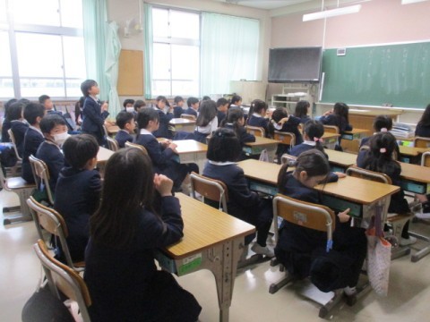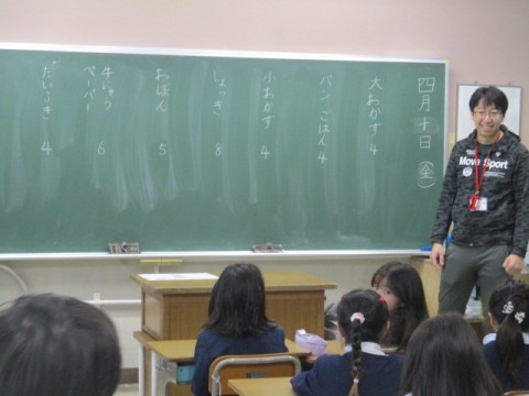 給食が来週から始まるので、当番を決めていました。