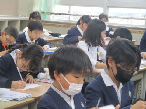 高学年専科の初めての学習です📚黒板には見通しを持った流れが書いてあり、落ち着いた雰囲気で学習が行われています。