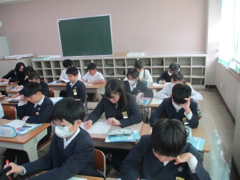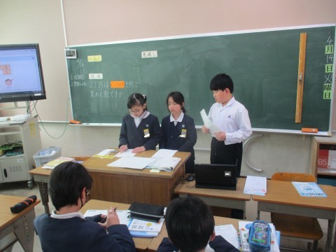 算数の授業の様子です。小数点の計算をみんなで解いて答え合わせをしました。