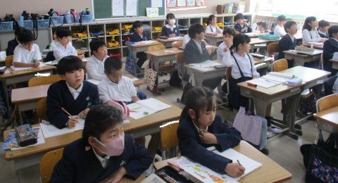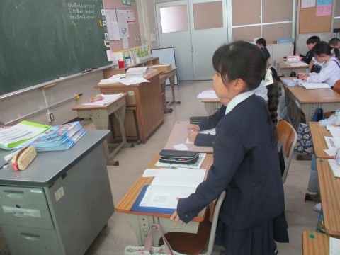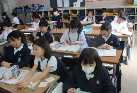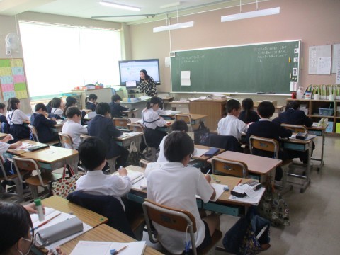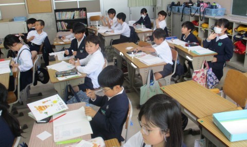 算数の授業の様子です。掛け算の決まりを見つければ九九の答えを見つけることができるのを学びました。