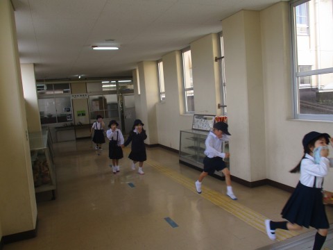 今日は避難訓練を実施しました。地震から火災→津波を想定した避難です。1年生も6年生に付き添われながら避難がしっかりできました。