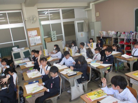 国語の授業の様子です。ふきのとうの単元です。いつ、どこでのお話か見つけました。
