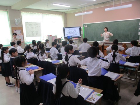 音楽の授業の様子です。みんなで曲に合わせて振付をしました。