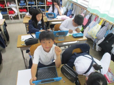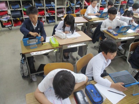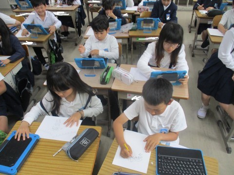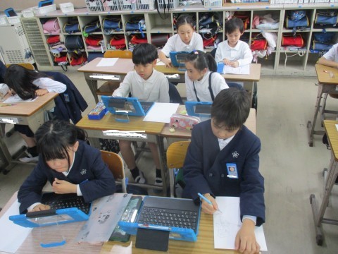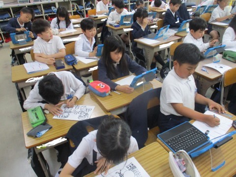 図工の授業の様子です。はとぶえ作品に取り掛かっています。