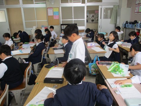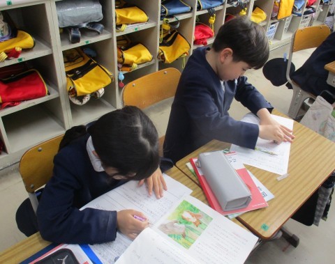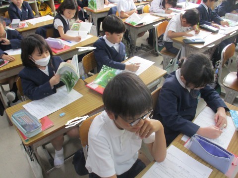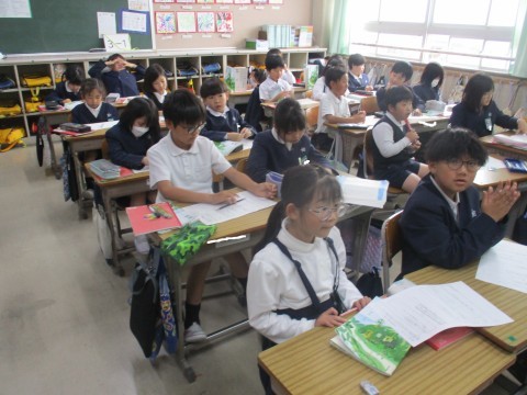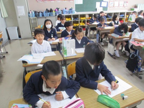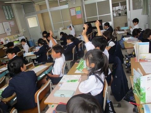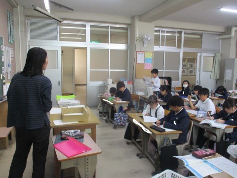 国語の授業の様子です。「春風をたとっで」の単元です。物語が進むにつれてルウがどのようにかわったか考え発表しました。
