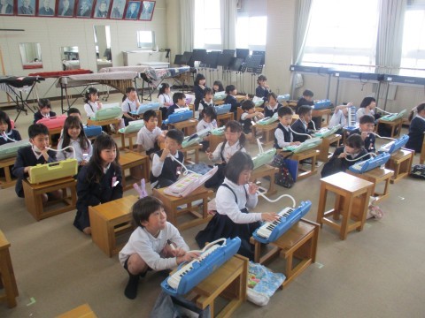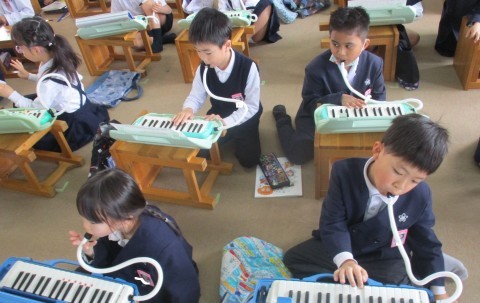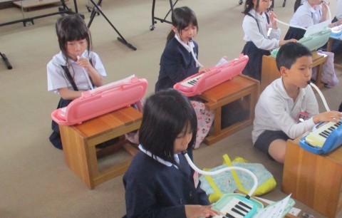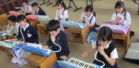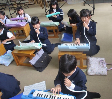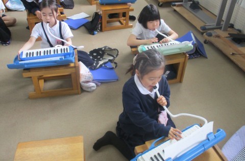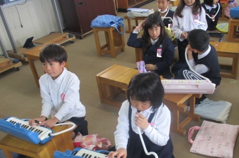 音楽の授業の様子です。小さなカノンを演奏しました。