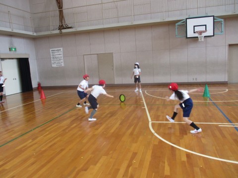 体育の授業の様子です。みんなでドッチビーをしました。