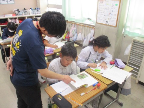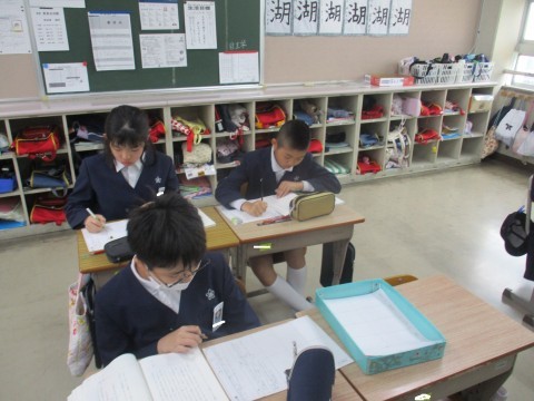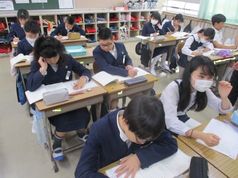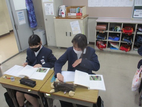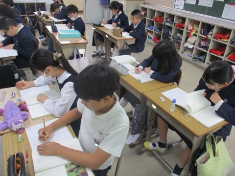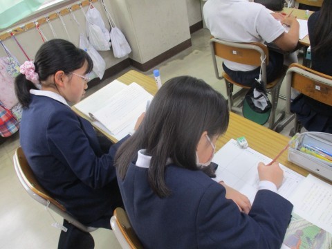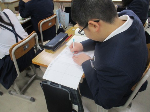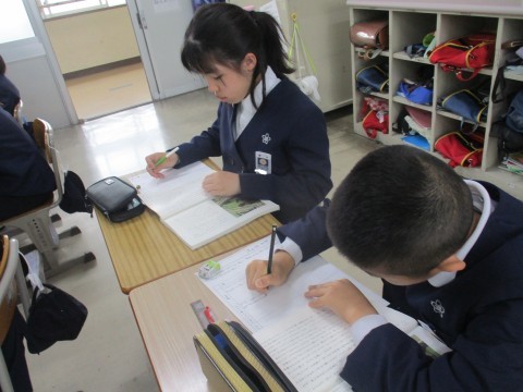国語の授業の様子です。「帰り道」の単元です。登場人物の物事のとらえ方や考え方についてまとめました。