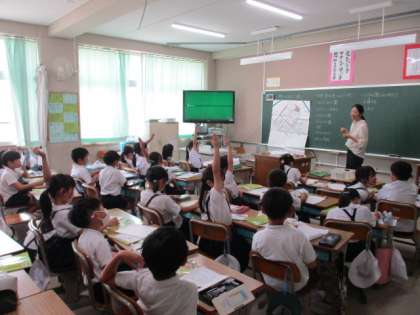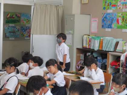町たんけんで見つけたさまざまなお店や公園などを思い出して、発表していました。