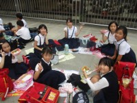曲調をみんなで確認した後、リコーダーを班で練習していました。