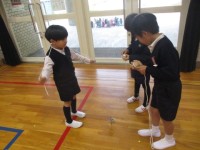 今日は地域の方にご来校いただき、むかしあそびについて教えていただきました。