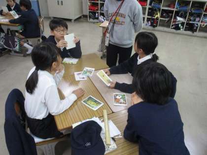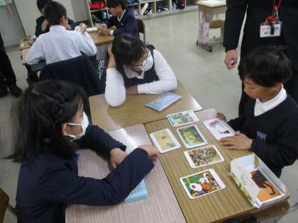 今日はアートカードから想像したストーリーを考え、みんなで共有しました。