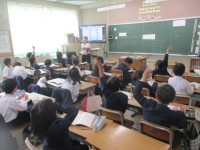 今日は栄養教諭の先生から食育の話をしていただきました。タブレットを使って食べ物仕...