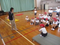体育の授業の様子です。マット運動で前転・後転などをしました。