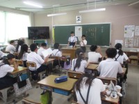 保健の授業の様子です。がん予防の授業をしていただきました。