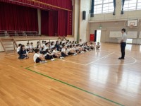 比例の学習をしています。学校の階段の高さを考えています。「ここまでわかる?」「もっと反応ほしいな」とまさに先生のようでした。