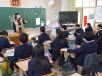 学校事務の先生にインタビューした様子を報告しました。