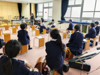 クラブ活動後に音楽隊も卒業アルバムの撮影を行いました。