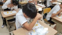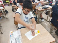 図工でビー玉コースターを作りました。コースの形を変えて、自分の思うように転がるように工夫しました。今日は、友だちのコースターでたくさんあそび、友だちのコースのおもしろいところ、いいなと思ったところを交流しました。わくわくするコースがたくさんであっという間の時間でした。