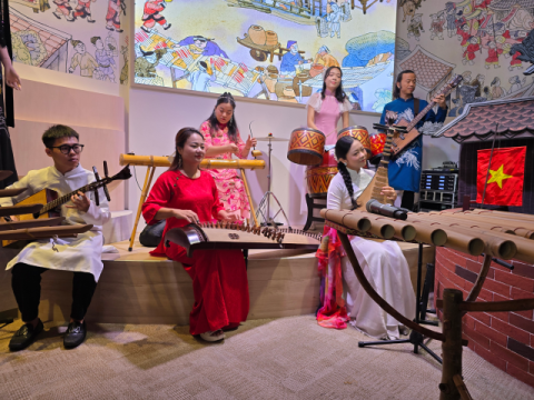 ベトナムパビリオンでは、ベトナムの楽器による演奏を聴くことができました。