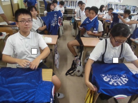 来週の「連運を励ます会」に向けて,ユニフォームが配られました。