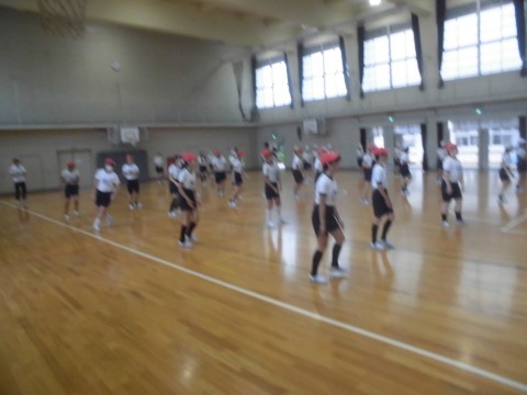 今日はあいにくの天気だったので,体育館で体を動かしました。
