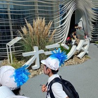 フィリピン館では、動画でフィリピンの自然を見たり、手作りの織物を見たりして、フィリピンの文化についてたくさん学びました。